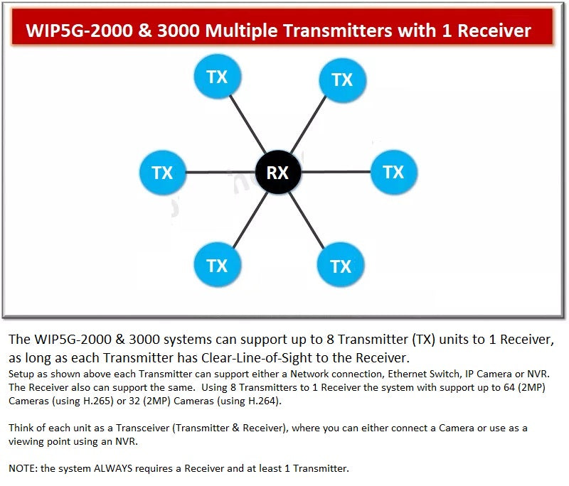 • Multiple systems may be used for Point-to-Multi- Point applications. This is an Exclusive Feature providing more solutions for your Wireless Video requirements.
