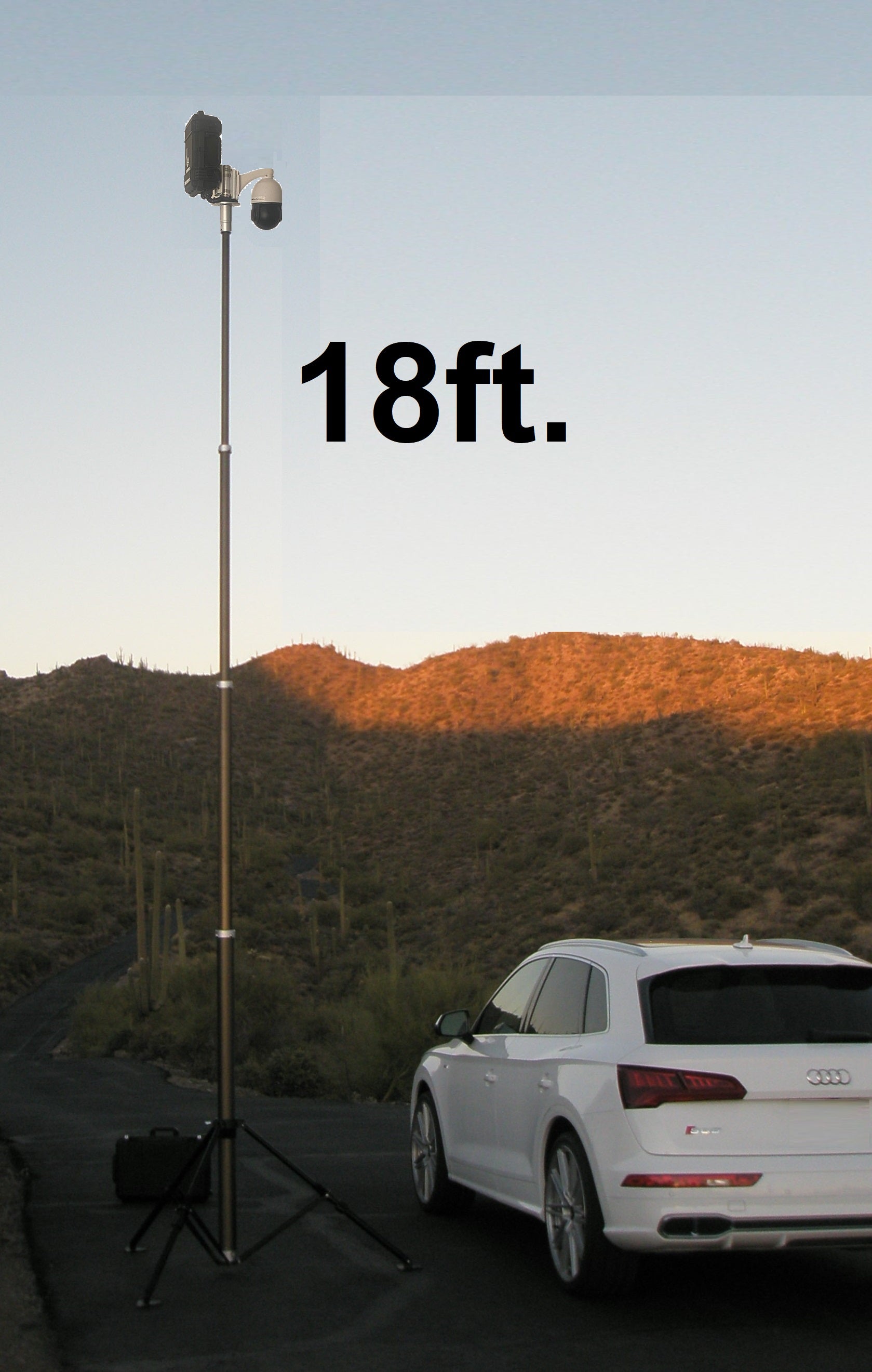 Our Deployable PTZ Camera systems provide ultra-low latency HD wireless video over 3000 feet clear-line-of-sight range. These system provide excellent performance for almost any remote surveillance or monitoring application. The systems are completely turn-key stand alone wireless video solutions for quick setup for Plug & Play use. The 18ft. Pneumatic Heavy Duty Folding Tripod Mast provides the ultimate solution for Endzone Cameras, Undercover Police Cameras, Construction Site Cameras and many more.