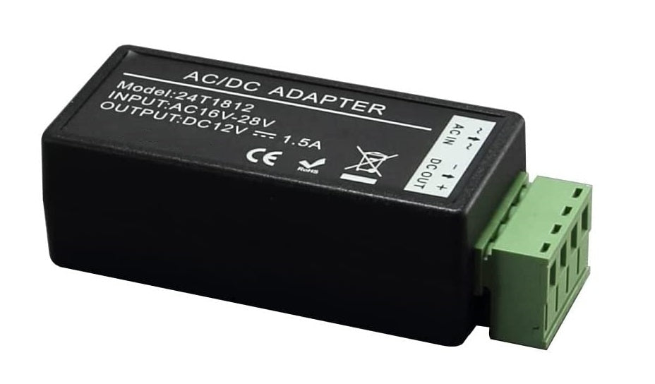 Convert 24VAC to 12VDC 1500mA max. current draw - Terminal Block for 24VAC Input and 12VDC Output - Great for long power cable runs!